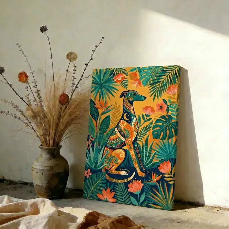 ✨🐕 Bohemian Tropical Greyhound Paint by Numbers Kit🌴 Bring bold, vibrant bohemian charm to your home with this eye-catching maximalist DIY painting kit — no painting experience required!